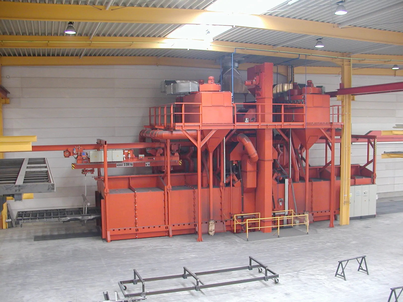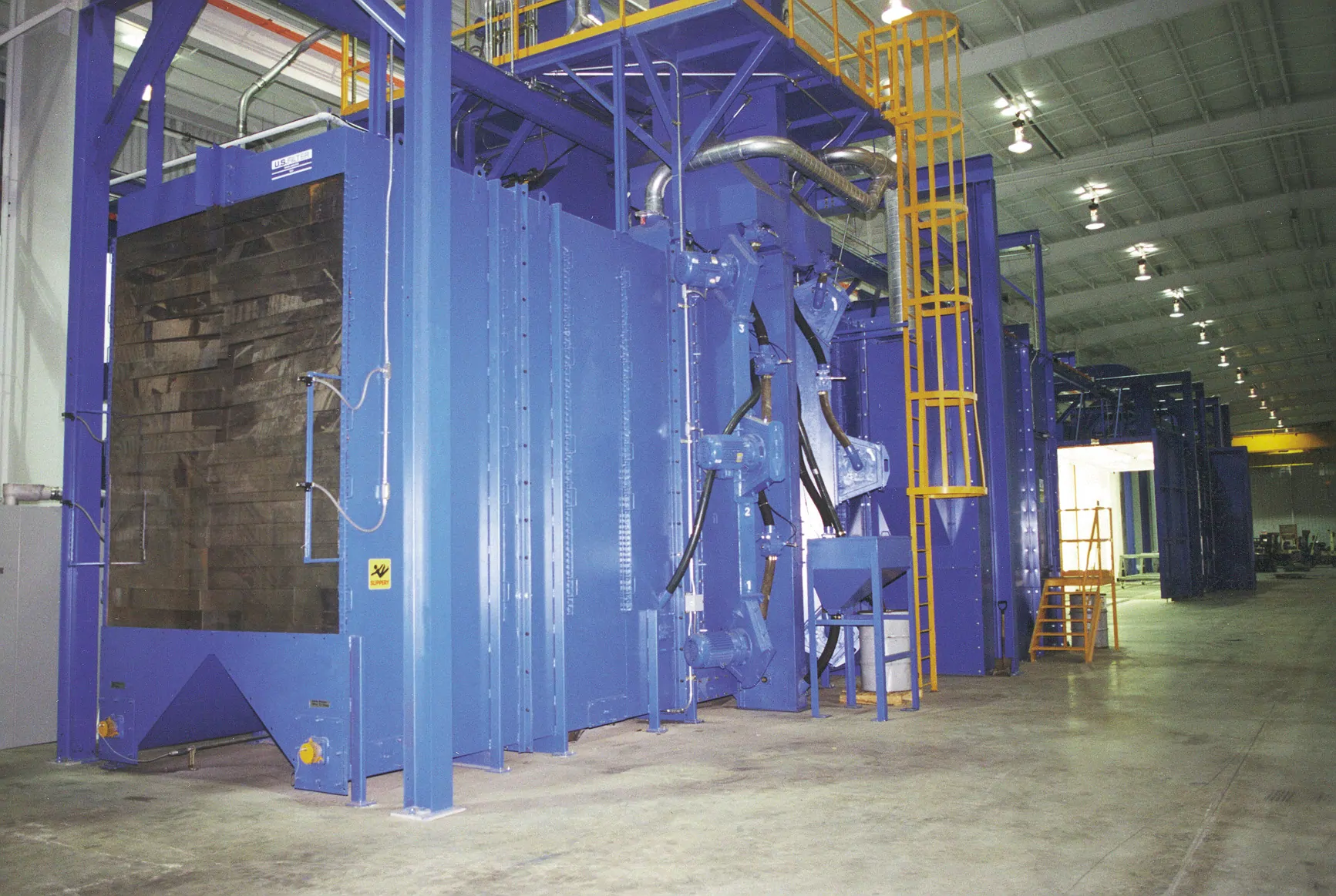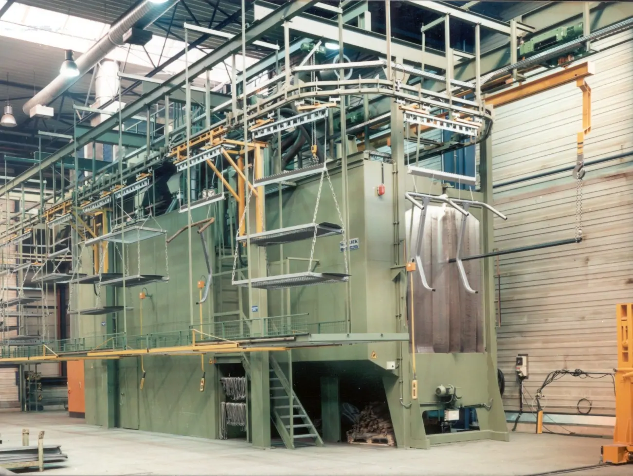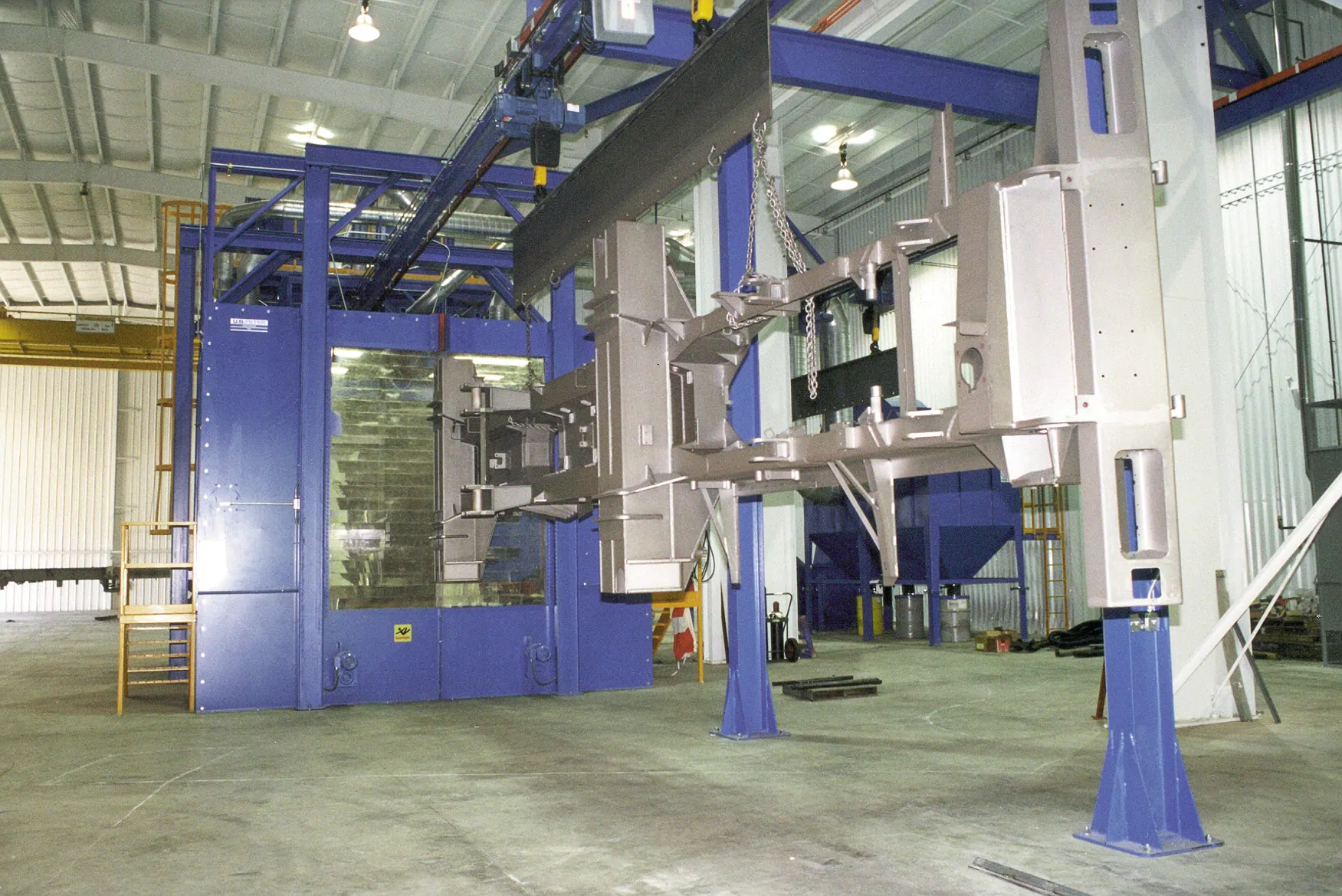 TEAM Kumlama Makinaları Askılı kumlama makinası satış ,montaj yedek parça ihitiyaçlarınızı karşılar .Dilerseniz asklı kumlama makinanızın modernizasyonu periyodik bakımını yapabilir uzamn kadromuzdan teknik destek alabilirsiniz. Team Kumlama Askılı Kumlama Makinesinin çalışması ile birlikte temizleme işleminin yapılacağı hazneye koyulan parçalar türbinler sayesinde yüzey temizlenir.Tozlu çelik bilyalar elevatöre dökülür. Elevatör makine içine dökülen çelik bilyaları seperatöre taşır.Dökülen çelik bilyalar tozdan ayrıştırılır. Bu sayede türbinlere tekrar tozsuz çelik bilya aktarılır.